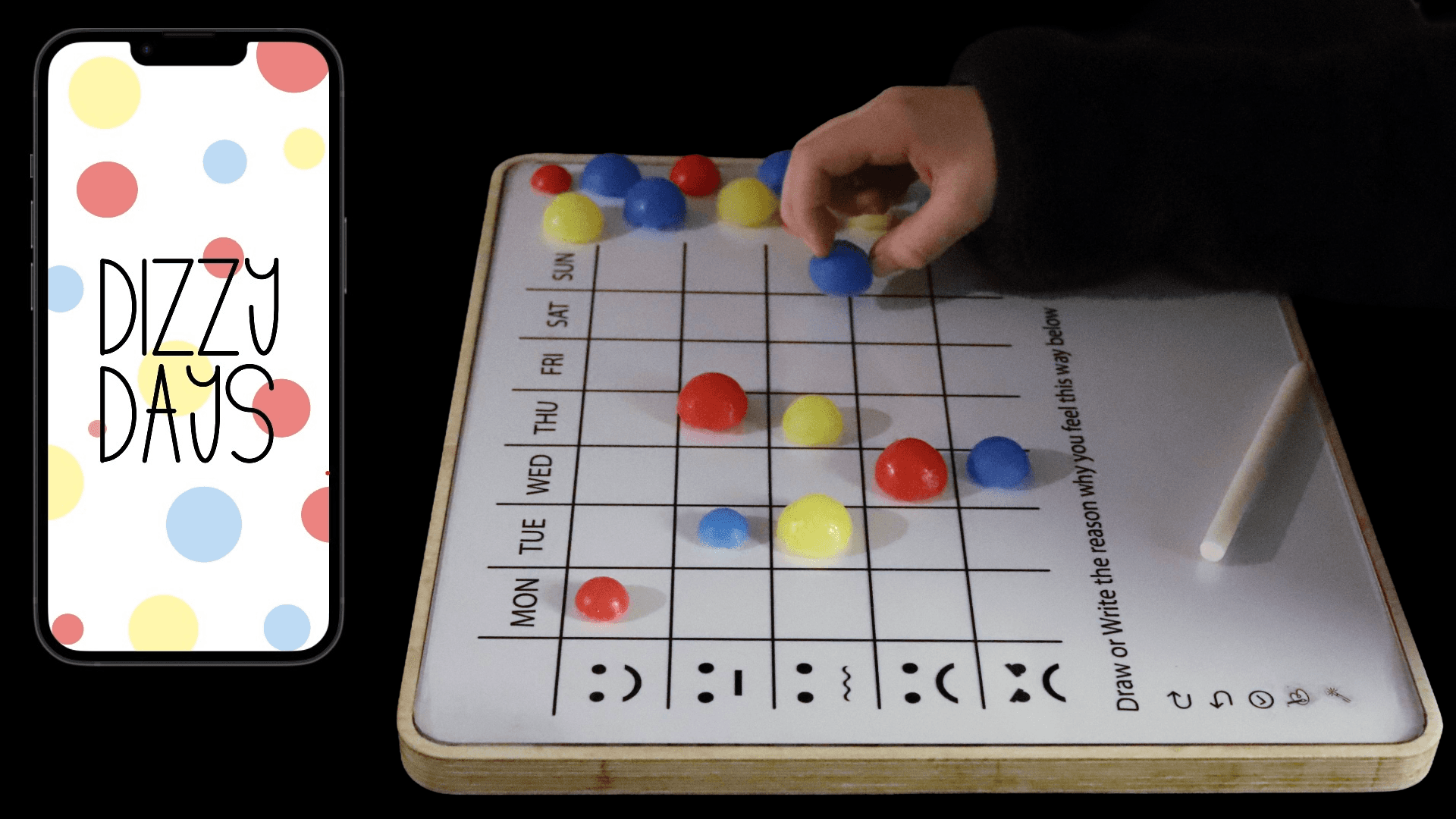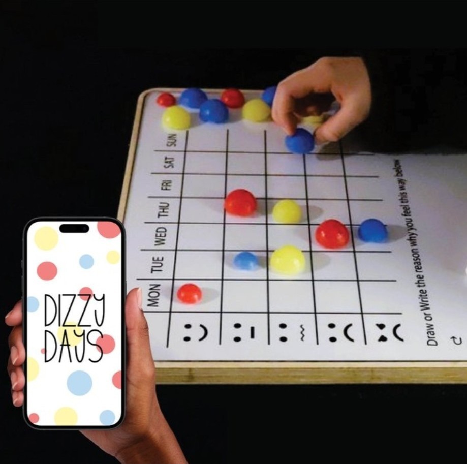 Dizzy Days is an interactive emotional diary system for children aged 6–10, rooted in Cognitive Behavioral Therapy (CBT) principles. An engaging emotion-tracking diary for kids that encourages emotional expression through tactile interaction and parent-child reflection, with real-world testing and positive professional feedback.