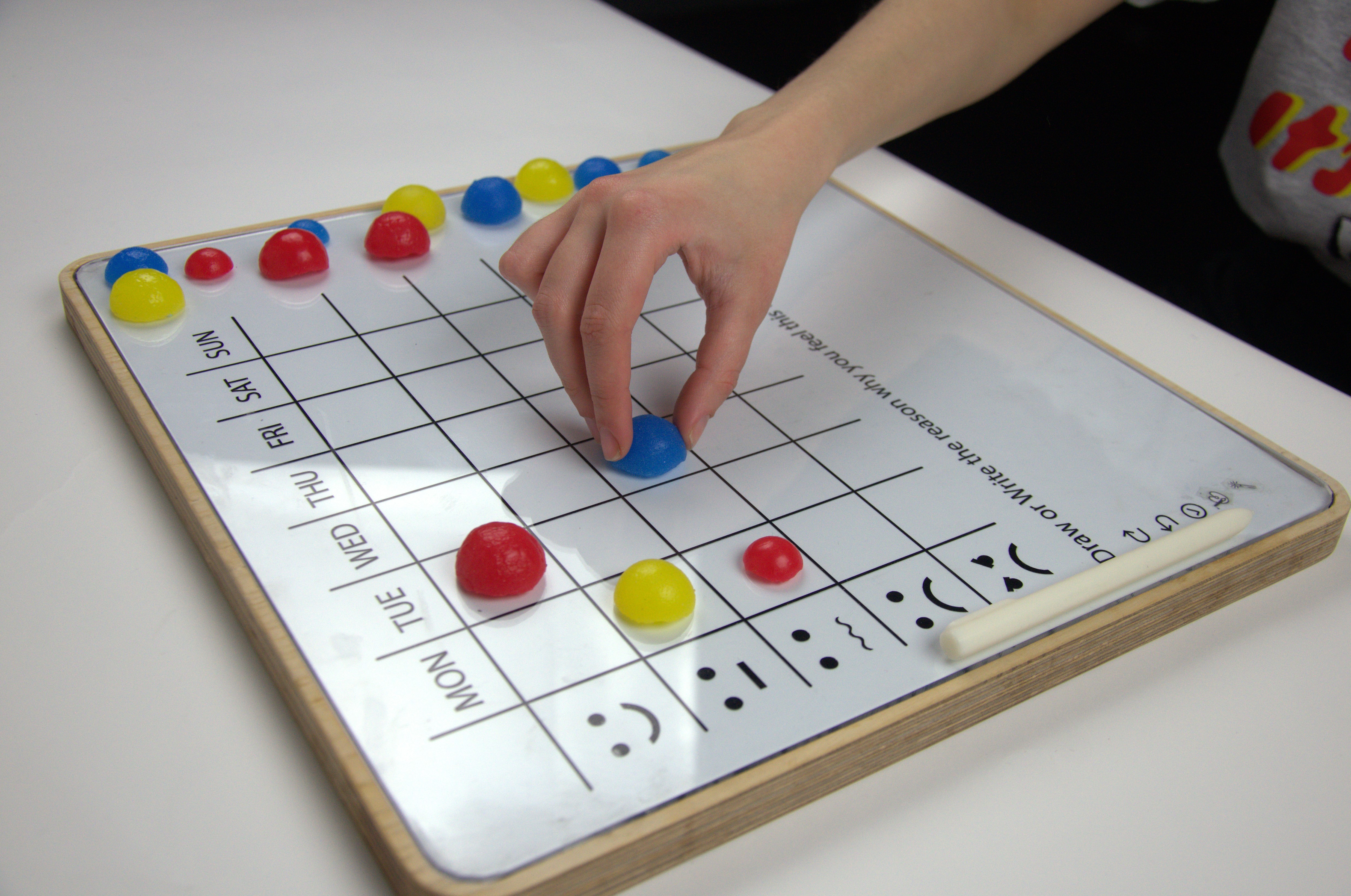 It used physical interaction (placing “emotion balls”) to promote daily reflection.